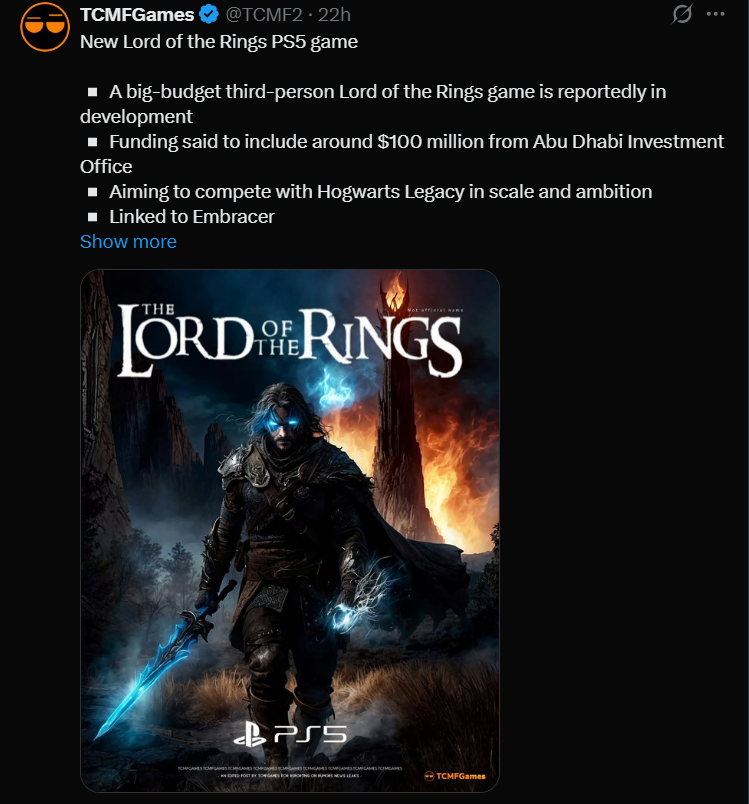The game reportedly involves around $100 million in funding and the major portion of this funding is coming the Abu Dhabi Investment Office (ADIO). This investment is part of a broader initiative aimed at expanding Abu Dhabi's presence in global entertainment and gaming industries. The rights for the game come under Middle-earth Enterprises, which is owned by the "Embracer Group". Although the publisher and developer have not been officially named, but reports strongly indicate that the development studio is connected to "Embracer's network of teams". If we assume about the release timings for this game, AAA fantasy games typically require 3–5 years of development, but since this project is still in early stages, any prediction would be speculative. So, if development began recently or is ongoing, the earliest possible release window might be 2027–2029, though nothing is officially confirmed.