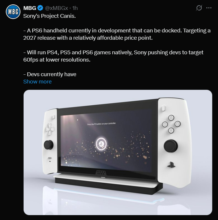 'Project Canis' is the name that is recently circulating in multiple leaks and in industry discussions for leaking the info of dockable PlayStation handheld product which is PS6. The core idea is straightforward, a lightweight and portable device built around a custom AMD APU that can run PlayStation titles natively while also docking to provide higher performance and TV output with much like Nintendo’s Switch, but aimed squarely at PlayStation's core AAA ecosystem. The strongest reporting is linking this hardware together comes from the leaker channel "Moore's Law Is Dead" and other outlets that have covered MLID's analysis and alleged internal AMD/partner slides. Those sources claim that 'Sony' is building two related APUs, one for the home PS6 and a second "Canis" APU for a handheld companion.