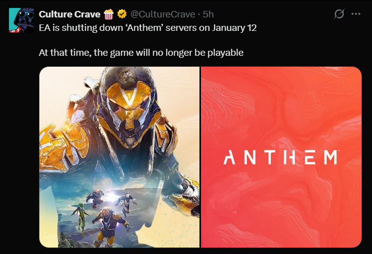 The interesting part is that, EA and BioWare have not pointed to a single dramatic event that forced the shutdown. But instead, it's the result of long-term commercial and development decisions. Although EA sold millions of copies, but it struggled to keep a large active player base and also failed to sustain frequent updates or expansions that live-service games typically need to thrive. That's the reason why Anthem never reached the level of success EA expected. BioWare initially planned a major overhaul (Anthem 2.0) to completely rework the game's structure and fix its issues. This was announced in 2020 but ultimately canceled in 2021. This cancelation was made partly because of shifting priorities of EA and BioWare towards other major franchises like "Mass Effect" and "Dragon Age".